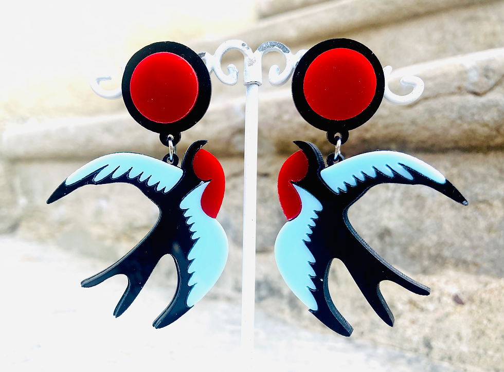 Boucles d'oreilles Perroquets #4 noir doré rose